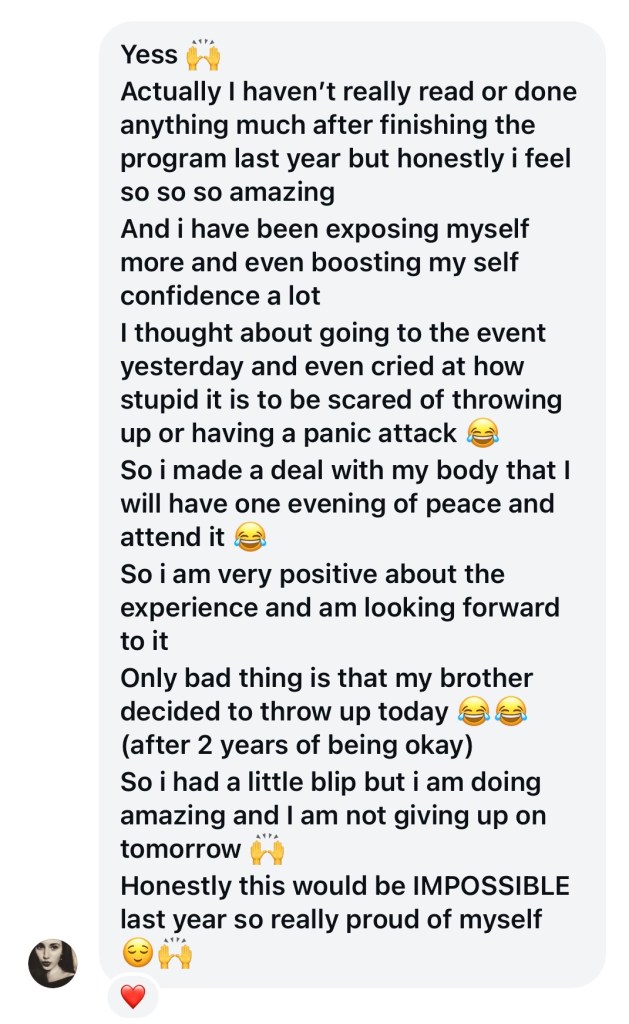 Emetophobia Client Wins!